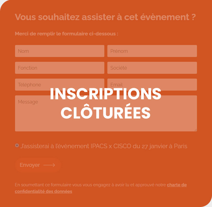 Nous vous invitons à découvrir cette solution autour d’un moment convivial chez CISCO, animé par nos équipes lors d’une présentation exclusive le 27 janvier 2026 à Paris.